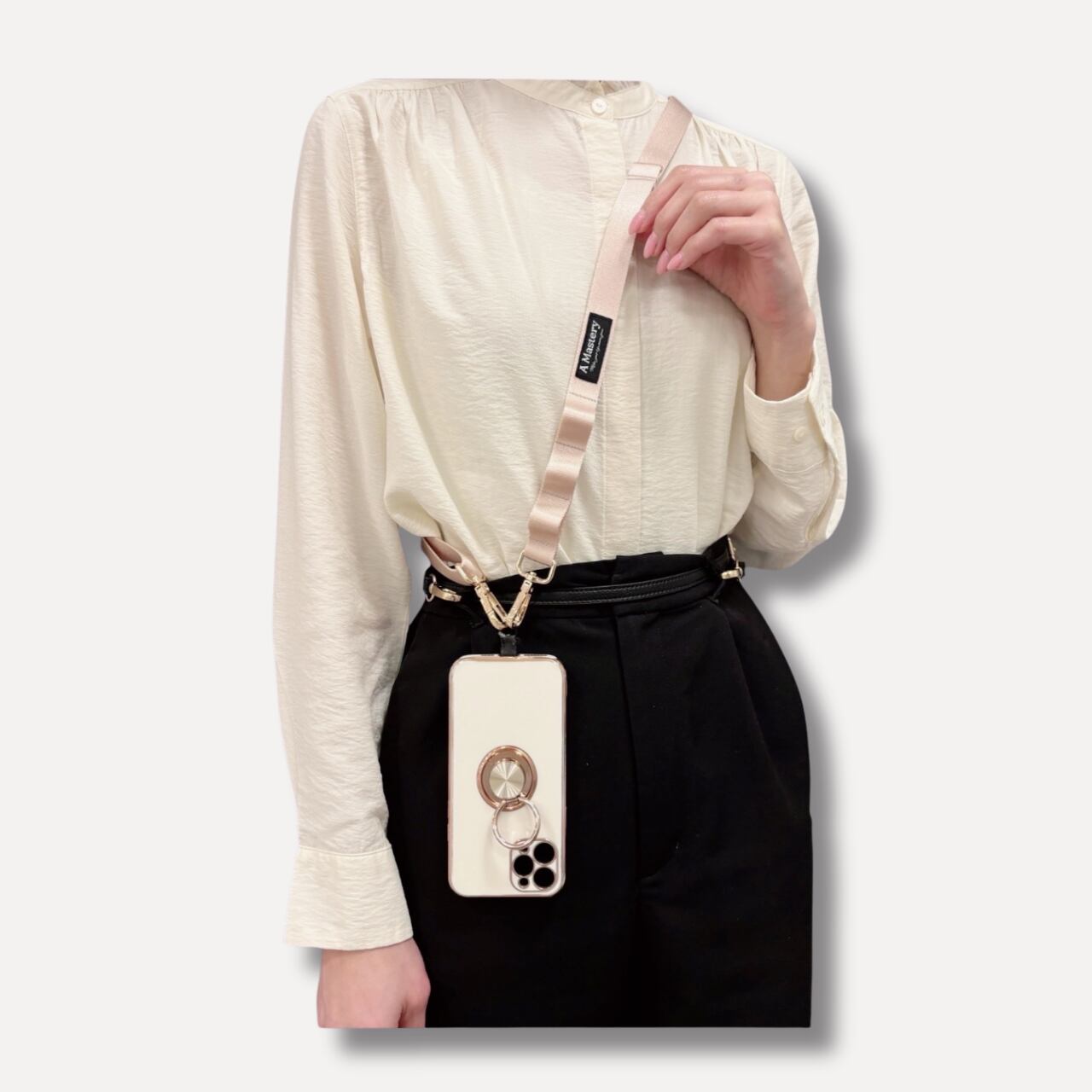 ■ストラップホールのないスマートフォンには、スマートフォンとケースの間に本品のストラップカードを挟んでご利用いただけます